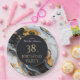 Platos de papel de cumpleaños de cualquier edad, de color negro y oro. Esta invitación muestra un diseño elegante con un toque glamuroso, con una sofisticada mezcla de negro y oro. Los detalles de mármol le dan un toque lujoso, mientras que la estética general es refinada, perfecta para celebrar un evento histórico. Una impresionante combinación de colores y texturas hace de este diseño una declaración inolvidable para cualquier ocasión especial.