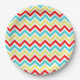 Cute Rojo Amarillo Azul Chevron Rayas Circus Niños Carnaval Placas de papel de cumpleaños