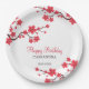 Plato De Papel Nacimiento Floral de Cerezo Rojo