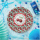 Un patrón de ilustracion ai acuarela de cerezas rojas retro, follaje verde sabio y planchas de papel de cumpleaños personalizadas a cuadros azules.