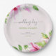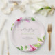 Ilustracion de acuarelas con marco floral de magnolia rosa, plantilla boda para servilletas.