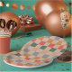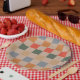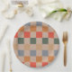 Plato De Papel Naranja azul beige Brown Checkered Gingham Pattern
