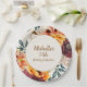 Plato De Papel Naranja Borgoña Floral Gold Purpurina 75 cumpleaño