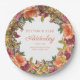 Naranja rústico de estilo rústico y color burdeos/óxido de agua floral y verde plato de papel de la recepción de bodas. Personalizado con los nombres de la novia y el novio, la fecha del boda y la ubicación del lugar.