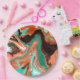 Plato De Papel Naranja Brown Abstract Art Birday Party mármol