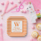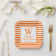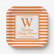 Plato De Papel Naranja de monograma moderno Stripes Reunión famil