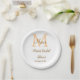 Plato De Papel Naranja monograma ducha de novia añada nombre simp