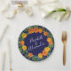 Plato De Papel Naranja Navy Blue Peony y Rosa Boda Floral