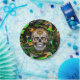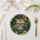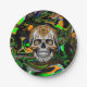 Plato De Papel Naranja negro y arte del cráneo de azúcar verde an