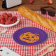 Plato De Papel Naranja púrpura de Halloween jack o lantern