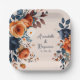 Plato De Papel Naranja Rústico Quemado y Boda Azul