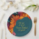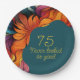 Plato De Papel Naranja Verde azulado retro moderno 75 cumpleaños