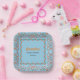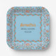 Borde floral naranja de inspiración india sobre un fondo azul acuático. El amplio borde de la impresión es abierto y amplio. Un moderno marco azul acuático oscuro se acentúa con un toque naranja. Este plato de papel es fácil de personalizar. Forma parte de la colección Naranja y Aqua Blue Indian.
