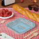 Plato De Papel Naranja y ducha nupcial azul acuática