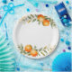 Estas placas de papel de ducha para bebés cuentan con naranjas de acuarela y una tipografía de escritura giratoria. Las placas de papel son perfectas para tu evento temático "pequeño cutie". Compra la colección completa para obtener un aspecto fiesta cohesivo.