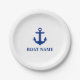 Nautical Bote Name Anchor Placas de papel de Fiesta azul y blanco