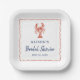 These chic coastal lobster bridal shower paper plates feature a red hand drawn lobster and wavy scallop frame.