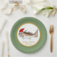 Añada la alegría de la pesca algún deportiva a su celebración del día de fiesta con estas placas de papel personalizadas que ofrecen un salmón (tambor rojo) que se divierte un gorra de Santa en un verde del vintage y el navidad estrellado del oro diseña.