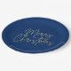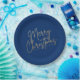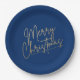 Feliz texto navideño en moda con elegantes letras en Relieve metalizado de imitación dorado se presenta en placas de papel azul de vacaciones en dos tamaños. COINCIDIENDO con los artículos de nuestra tienda.