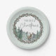Plato De Papel Navidad Verde Bosque de Pinos Acuarela Festivo