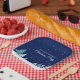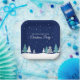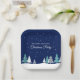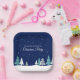 Hermoso cielo azul medianoche con abetos Navidades decoran este bonito, Navidades personalizados fiesta de papel para postres. La nieve bordea el hermoso bosque y los copos de nieve blancos se rompen en el aire nocturno. Personalice esta decoración de bonito para una reunión de vacaciones.
