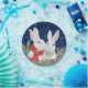 Perfecto para Navidades y durante las vacaciones de invierno. Dos conejos de conejo posan en los arbustos de vegetación festiva de temporada, como abeto, tejo, bayas de nieve y heliana. La nieve espumosa se desliza por encima de la escena. El Sr. Bun exhibe una acogedora bufanda roja y la Sra. Bun lleva una flor de baya de nieve. Ideal para cualquier conejo, animal o amante de la naturaleza, para cualquier reunión de vacaciones, fiesta o para compartir golosinas. Las servilletas coincidentes también están disponibles en el Zazzle. Artes y diseño originales y sensacionales de Tuzi Williams.