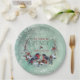 Una hermosa corona de ramas está decorada con bayas rojas, toros, pinos y pájaros de invierno en estos platos de papel de bonito. La imagen de la corona se coloca sobre un fondo de estilo bokeh verde bonito, con copos de nieve suaves cayendo por todas partes. En el centro está tu texto personalizado en rojo y verde, en tres campos separados por una pequeña imagen de baya. Asegúrate de ver los productos a juego en nuestra tienda.