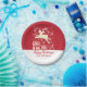 Renos que se pasean por la Navidad con nieve y estrellas, Navidades gráficos con platos de papel en tonos rojo brillante, rojo marrón, crema amarilla y blanco. Personaliza con tu propio apellido o saludo. Ideal para fiestas Navidades.
