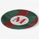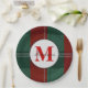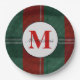 Los navidades emiten platos para entretenerse durante las vacaciones. Diseño de Navidades Monogramados de Morera y Festividad Rojas y Verdes Buffalo. Personaliza con tu nombre familiar y monograma inicial. Creado por ©Lesruba Designs.