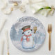 Un muñeco de nieve de color agua dulce con su escoba en la nieve. Qué lindo para tus vacaciones juntarse. Vea las servilletas coincidentes y otros elementos complementarios para completar su tema.