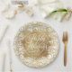 Felices fiestas con letras blancas de moda sobre un chisme de Relieve metalizado de oro falso sobre el fondo de los giros dorados, estos platos de papel también están personalizados con tu nombre. Ideal para tu hogar o regalo como regalo. SINTONES Y MÁS diseños en nuestra tienda.