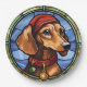 Plato De Papel Navidades de vidrio manchado de Dachshund