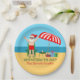 Este lindo Navidad personalizado en julio con un plato de papel hace de este verano una perfecta decoración fiesta para una reunión de tumbona o piscina. Hacerlo un divertido espectáculo con la temática del polo norte con Santa Claus en sus baúles de natación al lado de un paraguas de playa de rayas rojas y blancas y regalos. ¡Nunca antes había visto al Sr. Klaus en un bañador! El texto verde une el divertido tema de Navidad.