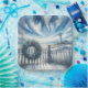 Una corona decorada con conchas y vegetación adorna una valla de madera, mientras que un faro se sitúa cerca del océano bajo un cielo lleno de nubes dramáticas y gaviotas que se disparan