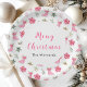 Este elegante y festivo plato cuenta con una funda naútica para patinar sobre hielo, flores rosa de la poinsettia, bayas y follaje. El texto combina guiones manuscritos y sans serif para un estilo elegante y moderno. Esto es perfecto para fiestas Navidades.
