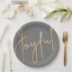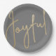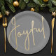 Alegres en un falso guión de Relieve metalizado dorado en estos platos de papel gris de dos tamaños, son elegantes para cualquier ocasión de vacaciones de Navidades o como regalo de la anfitriona. COINCIDIENDO con los artículos de nuestra tienda.