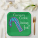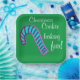 Fondo verde festivo. Navidades Cookie Baking Fun escrito en tipografía blanca. Caña de caramelo rayado azul y rosa con efecto 3D. Obra de arte original © TamiraZDesigns.