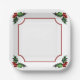 Un bonito plato de papel de Navidades con toques rojos y verdes. Ideal para tu fiesta de vacaciones.