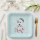 Platos de papel con una pintada de acuarela original y bonita de un perro descascarillado con un sombrero azul de Santa.