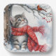 Plato De Papel Navidades Kitty mirando a un cardenal