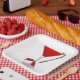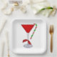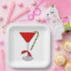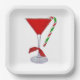 Vidrio martini rojo con bastón de caramelo y arco rojo sobre un fondo blanco.