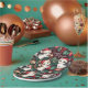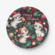 Estos platos de papel para Navidades son perfectos para los amantes de los gatos. Tienen tres gatitos adorables con sombreros de Santa y jugando con adornos. El fondo es verde festivo con bayas rojas y acentos dorados. Estos platos de papel le darán un toque de alegría y cortesía a la mesa de sus Navidades.