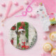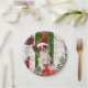 Navidades de Papillon Perro sentados afuera de casa decorada con flores de Navidad, el árbol de Navidad es una idea de regalo perfecta para los Navidades de perro.