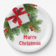 Plato De Papel Navidades Pina Árboles con rojo presente en blanco
