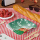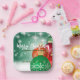 Diseño personalizado de placas de papel para Navidades con Navidades rojos y verdes sobre un fondo verde brillante y nevado. El texto es totalmente personalizable. Para cambiarlo, utilice la opción Personalizar. Para obtener más cambios, como cambios en el tipo de letra, color de fuente o diseño de texto, utilice la opción Editar herramienta de diseño.