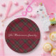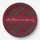 Navidades rojos y verdes oscuros platillos de papel con nombre familiar