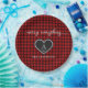 Diseño único que presenta un patrón original de manchas de búfalo en negro y rojo, corazón negro con un falso borde plateado para tu monograma, así como una bella caligrafía moderna: "alegre todo". Utilice la herramienta Personalize para agregar su original. Más ideas de regalos en mi colección de cheques de búfalo.