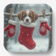 Plato De Papel Navidades San Bernardo Cachorro en rojo