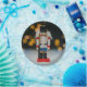 Navidades SlipperyJoe nutcracker adorno de luces borrosas fondo luces blancas chaqueta blanca pantalones de pelo blanco barba de pelo blanco artístico orgullo gay regalos LGBTQIA botas negras decoración festiva atmósfera