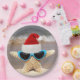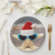 Starfish en la arena de la playa con el gorra de Santa Claus y gafas de sol para el corazón para Navidades tropicales